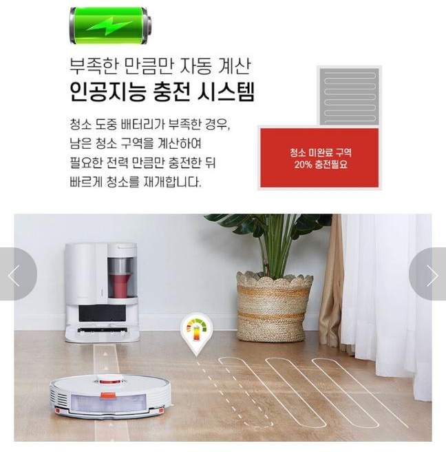 게다가 청소 명령후 충전이 모자라면 인공지능으로 알아서 계산해서 충전한 다음 다시 도는데