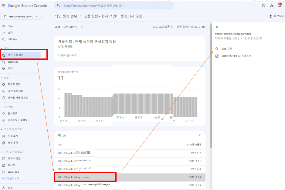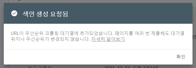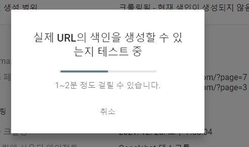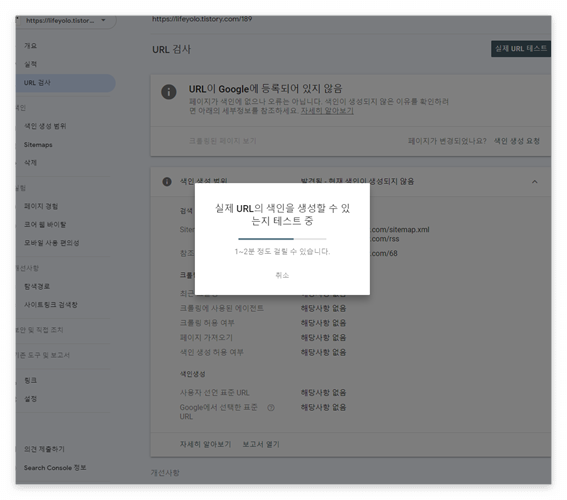 ④ 실제 URL 색인을 생성할 수 있는지 테스트 중