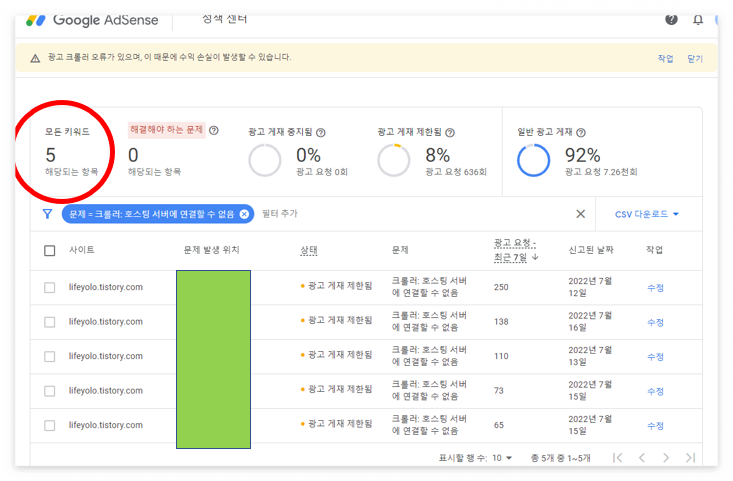 애드센스 광고 크롤러 오류 메세지 해결 방법