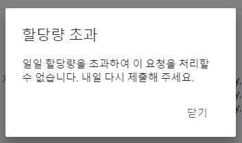 많이 하니까 일일 할당량 초과뜨네요. ㅎㅎ