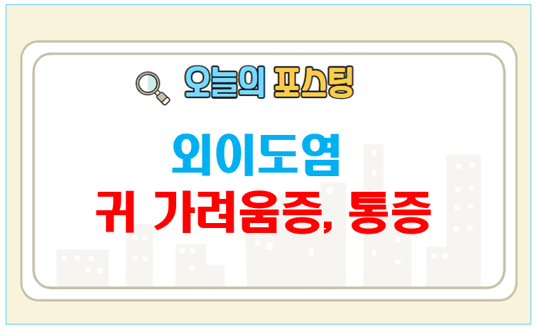 오늘 병원을 다녀오니 외이도염 ㅠ.ㅠ 지금도 긁고 싶어 미치겠지만 손가락을 키보드에 고정하고 포스팅해볼게요.