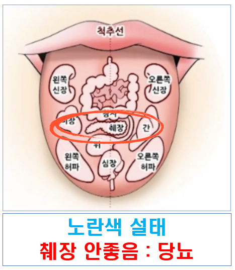 체내에 혈당이 지나치게 높은 경우에 췌장의 기능에 이상이 생기게 되면 혀에 노란 설태가 낀다고 하니 소변검사나 혈액검사를 통해 혈당과 당화혈색소 체크를 해보시는 것이 좋아요.