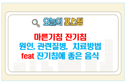 마른기침 즉 잔기침은 왜 나는 것인지, 어떤 질병과 연관이 되어 있는지? 그리고 어떻게 해야 증상을 치료할수 있는지에 대해서 포스팅합니다.