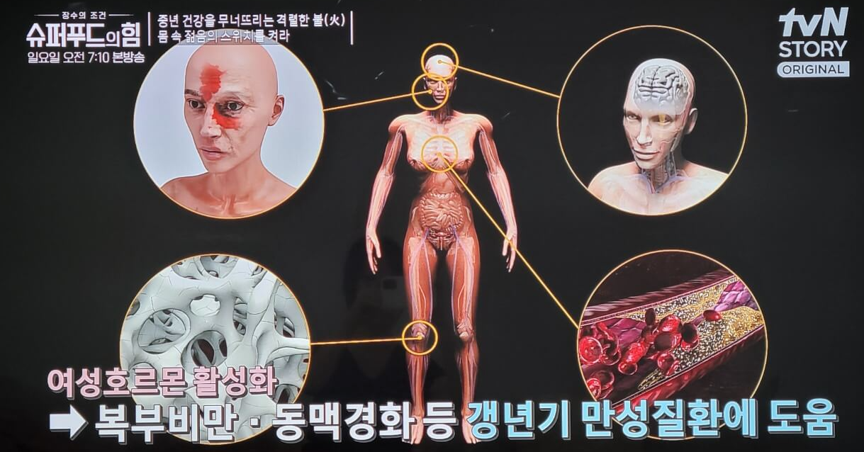 여성 갱년기에 대한 증상은 수월하게 겪고 지나가면 좋습니다만 여성 갱년기를 겪지 않기 위해 호르몬제를 복용하면 크게 2가지 부작용이 있다고 얼마 전에 포스팅했습니다. 그러면 어떻게 해야 부작용이 거의 없이 부족한 여성호르몬을 채울 수 있을까 고민했었는데 오늘 아침 TV에서 그 방법을 소개해서 포스팅해봅니다.