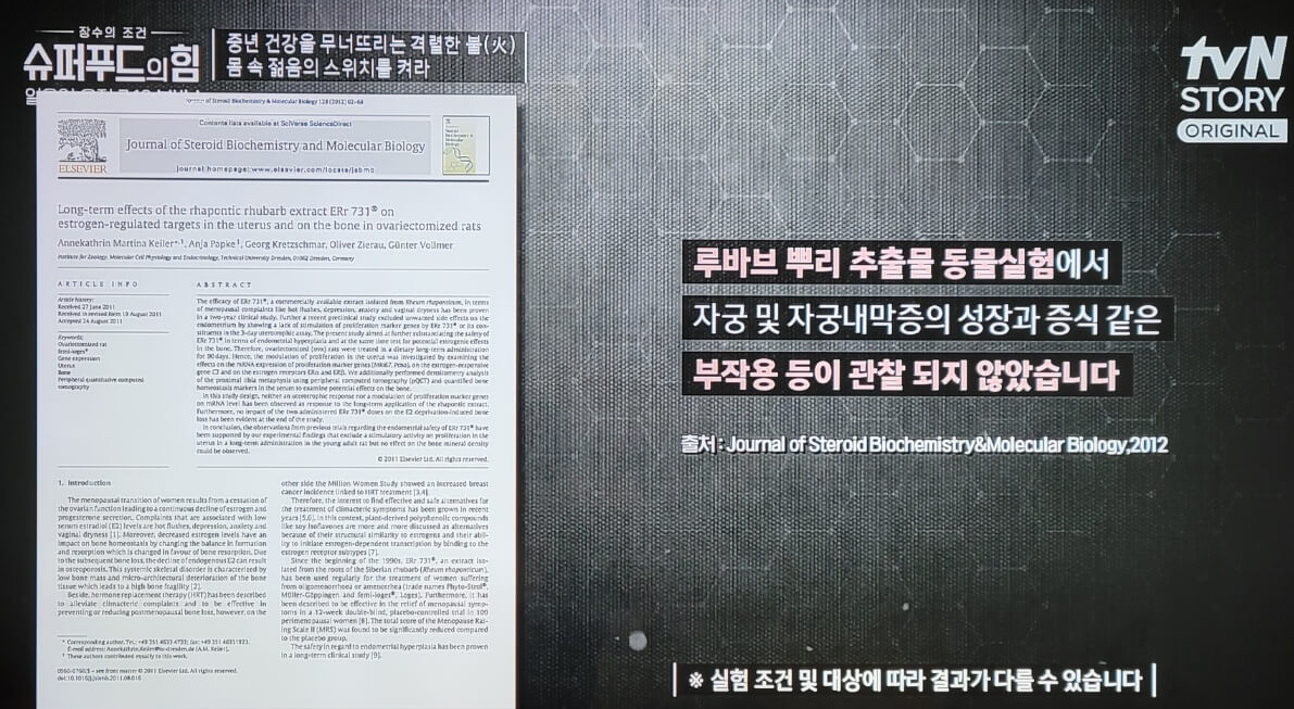 그런데 루바브 뿌리 추출물은 동물실험에서 자궁 및 자궁내막증 성장과 증식 같은 부작용이 관찰되지 않았습니다.