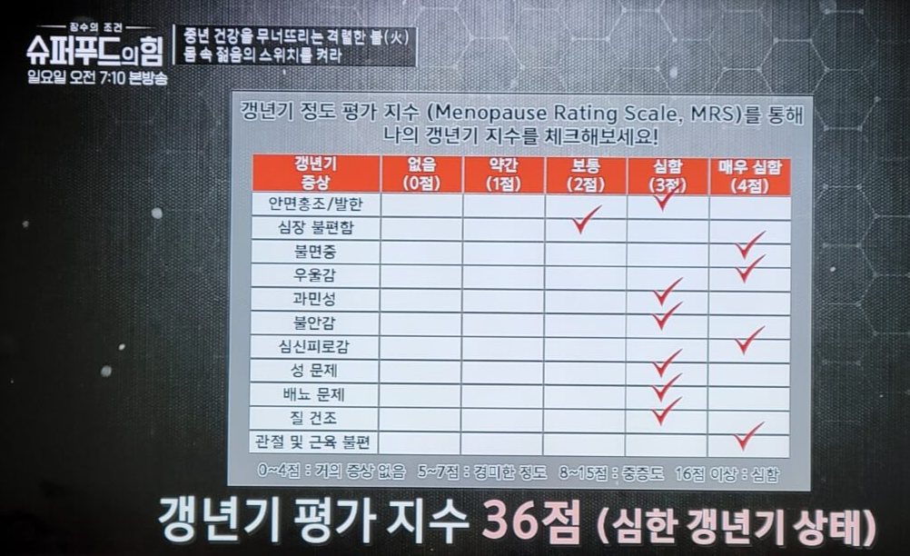 40대 이후 여성분들이면 아래 MRS 갱년기 정도 평가 지수 체크 한번 해보셔요.