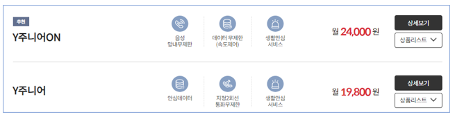 2) KT 키즈요금제는 정확히 2GB 데이터 량이 없어서 Y주니어로 비교하면 데이터 1.5GB , 통화는 KT 모바일끼리만 무제한 그 외에는 60분만 제공됩니다. (월 24,000원)