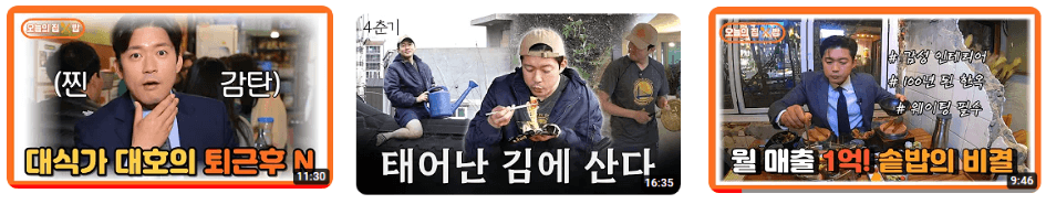 퇴근 후 N은 김대호 아나운서가 퇴근후에 맛집을 소개하는 형식으로 진행이 되는데 생생정보통, 6시 내 고향 느낌인데 메뉴가 정말 기가 막혀요. 그리고 이 분 자체가 갖는 행복 바이러스 느낌이 있다 보니 보는 내내 힐링되는 느낌 었어요.