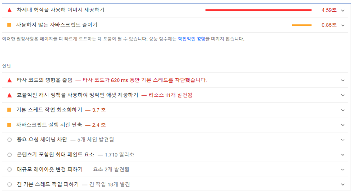 워드프레스를 공부한 지도 언 2주가 넘어가네요. 문제가 하나하나 발생할 때마다 다 기록을 해두고 싶지만 잘 안되네요. 하루가 48시간 이면 좋겠습니다. 오늘은 얼마 전부터 워프 블로그의 사이트 속도 체크를 해보니 너무 느려서 개선이 필요하다는 메시지를 보고 고민한 좋은 대안을 하나 말씀드리려 해요.