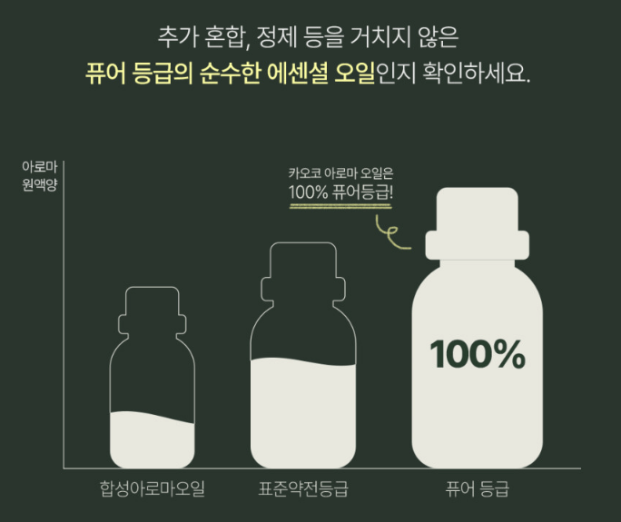 제가 구입한 아로마오일은 카오코 100% 천연 에센스 라벤더 오일이에요. 위에 이미지에 퓨어등급인 거죠. 현재 네이버 평점 4.8에 후기가 3900건 정도 있습니다. 베개에 한 방울 떨어뜨리고 자면 숙면에 도움이 된다고 하여 구입하였어요. 10ml인데 효과가 있으면 계속 구매해서 써보려고 합니다. 써 보고 솔직 리뷰도 남겨볼게요.