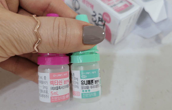 렉타신 점안액은 레보플록사신수화물로 안구 충혈 및 염증에 좋은 점안액입니다. 그리고 유니메론은 항생제로 병균을 제거하는 역할을 합니다.