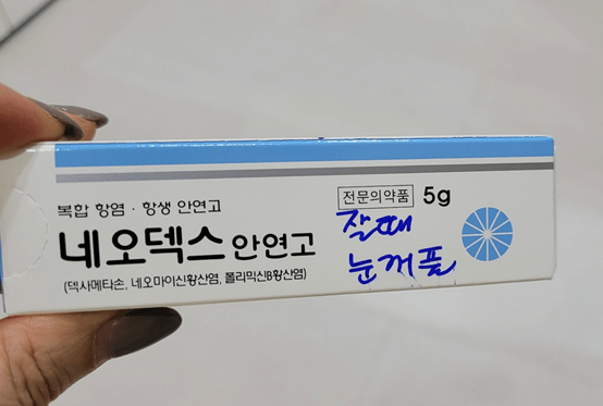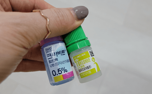 눈 주위에 대상포진이 발병하면 피부과도 가야 하고 안과도 가야 합니다. 우선 눈이 걱정되어 안과부터 들렀습니다. 선생님께서 한참을 보시더니 다행히 대상포진은 아니라 하셨고 눈에 염증이 다소 보인다고 하시면서 안약을 처방해 주셨어요. 그리고 눈애교 살 부분에 모기 물린 것처럼 보이는 물집에 바르는 안연고도 처방해 주셨습니다.