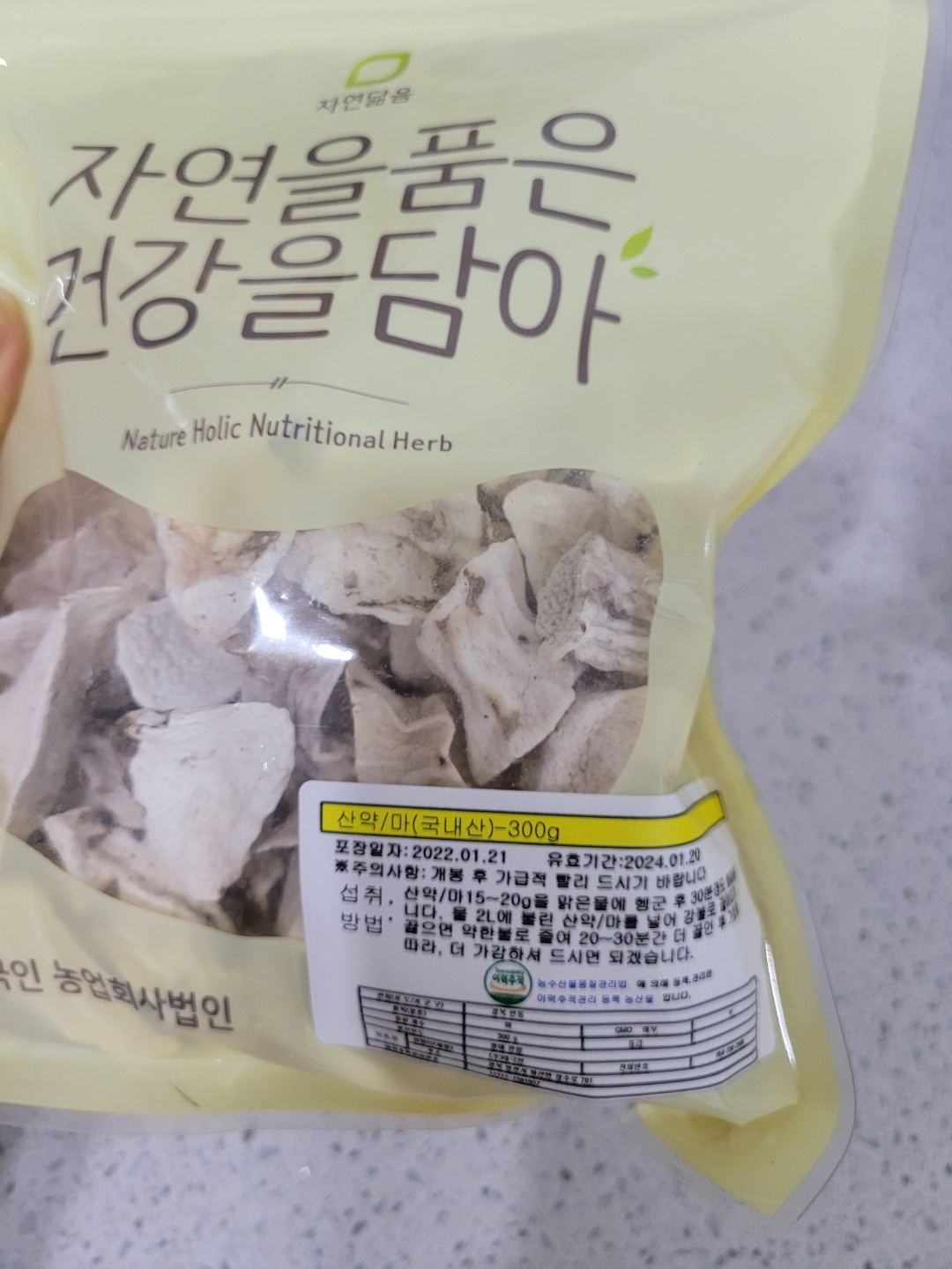 산약(마) : 물을 마셔도 갈증이 해소되지 않는 사람, 오랜 기침, 가래, 불임, 소변을 자주보는 증상완화, 폐, 신장 및 비장을 튼튼하게 함. 자양강장 효과로 정기를 보함.