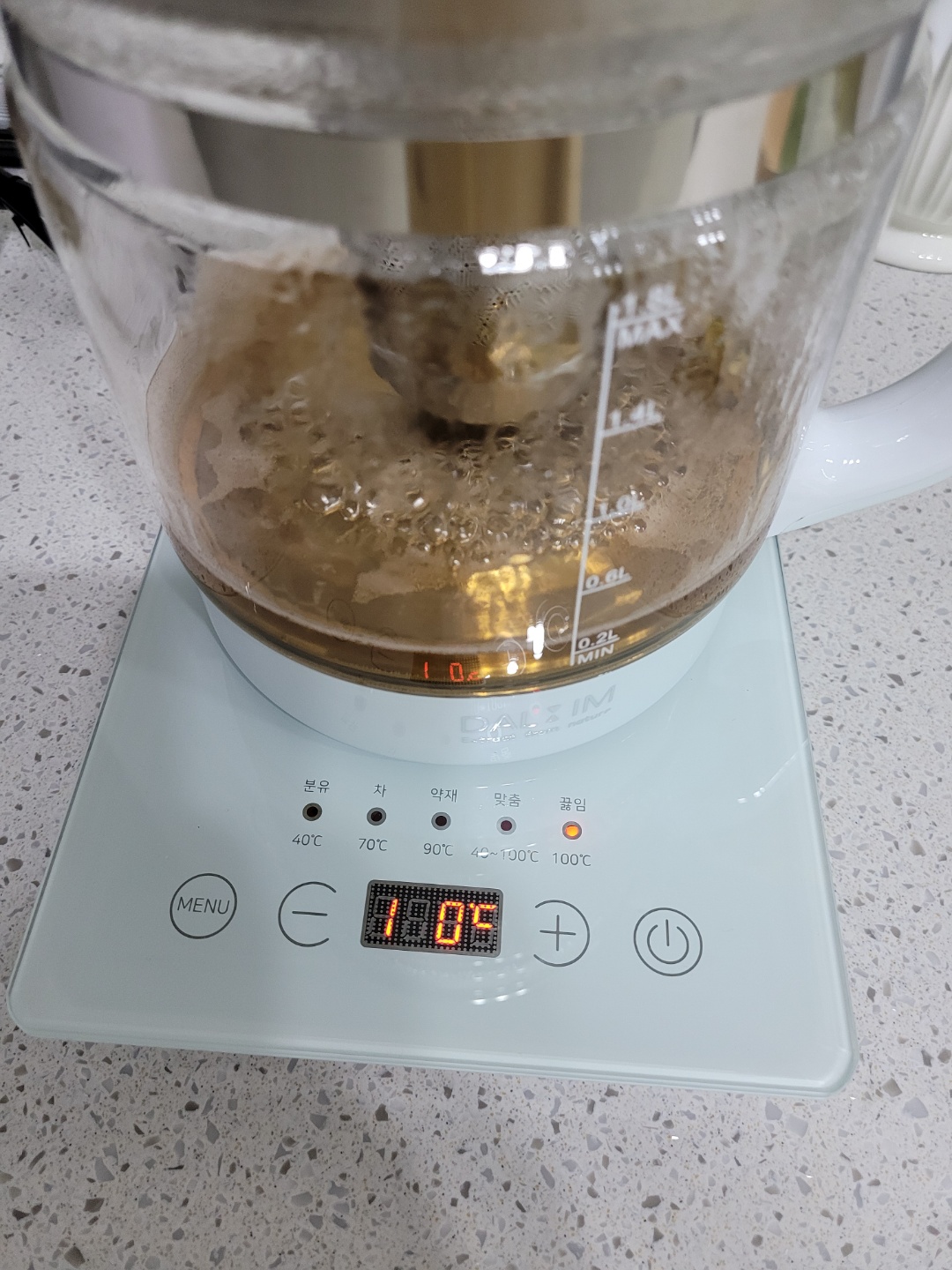 순서대로 10,10,7,3(단위g)으로 물 2L에 2시간동안 약한불로 끓여서 물 처럼 마시면 됩니다.