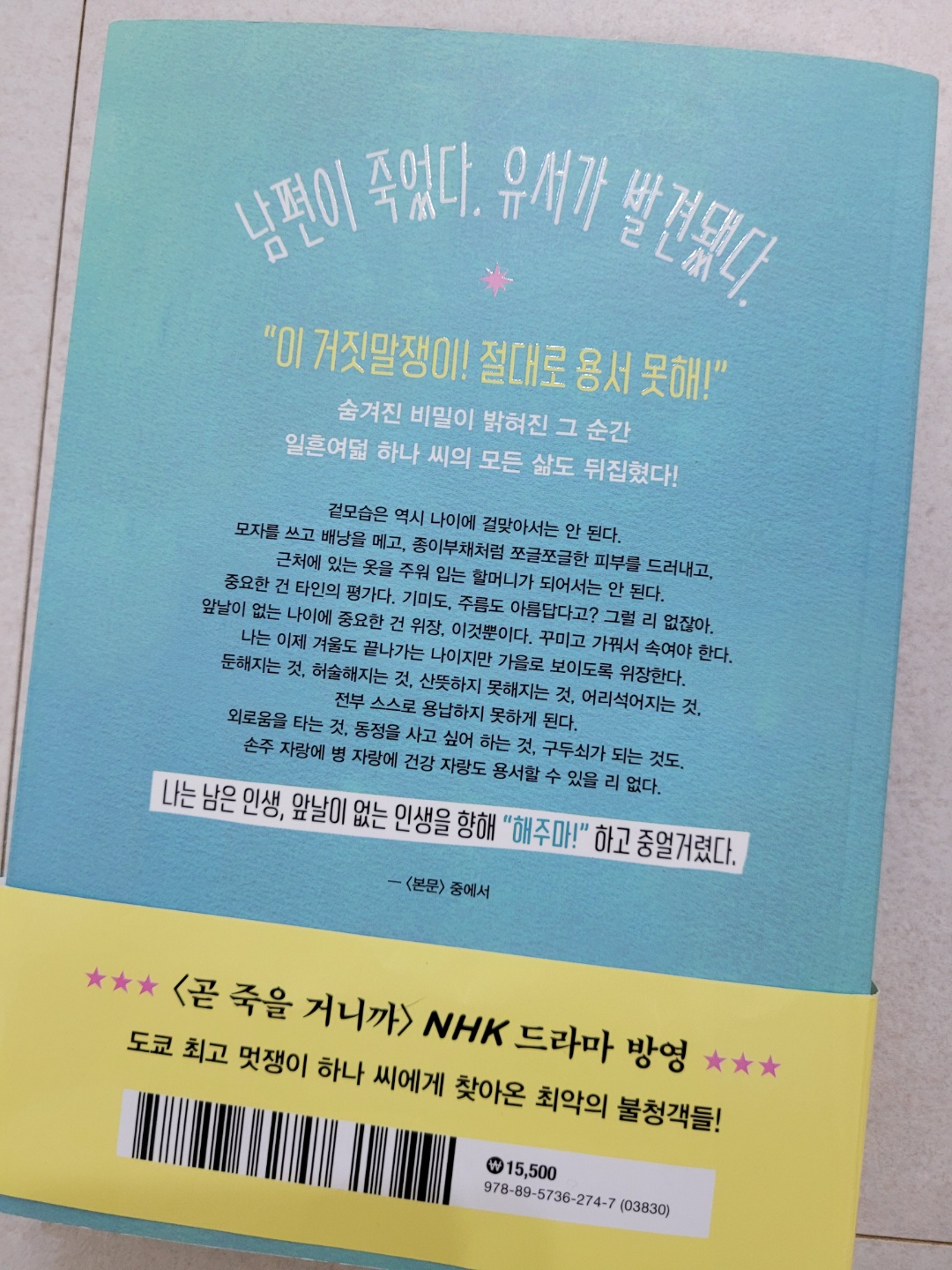 책 제목에서 느껴지듯 '곧 죽을거니까'는 78세 할머니의 이야기 입니다.